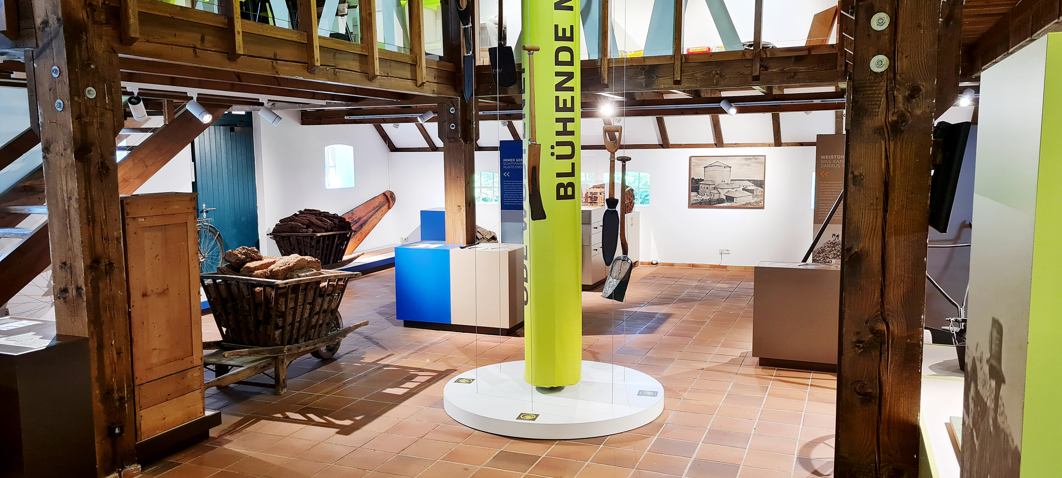 Die interaktive Ausstellung in zwei Ausstelungshäusern und auf dem großen Freigelände bietet zahlreiche spannende und auch unterhaltsame Informationen über das Ostermoor und seine Kultivierung. Mitmach- und Medienstationen, sowie die Moorrallye laden dabei zum aktiven Erleben und Entdecken ein.